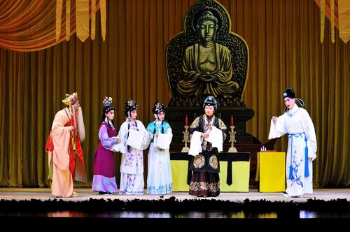唐代时,洛阳青年张珙赴试,途中宿普救寺,遇故相崔珏之女莺莺,一见钟情。驻军孙飞虎兵变,围住寺院,欲夺莺莺。崔夫人情急,声称将莺莺许婚给能退贼兵者。张珙请来友人白马将军杜确。打退了孙飞虎。崔夫人却悔约,使张与莺莺兄妹相称。张通过崔婢女红娘传递诗简,跳墙夜会莺莺,莺莺责张非礼。张忧愤成疾,红娘引莺莺来问候,两人订情。崔夫人闻知,怒打红娘,红娘反责其失信。崔夫人无奈,只好约张中试后成婚。