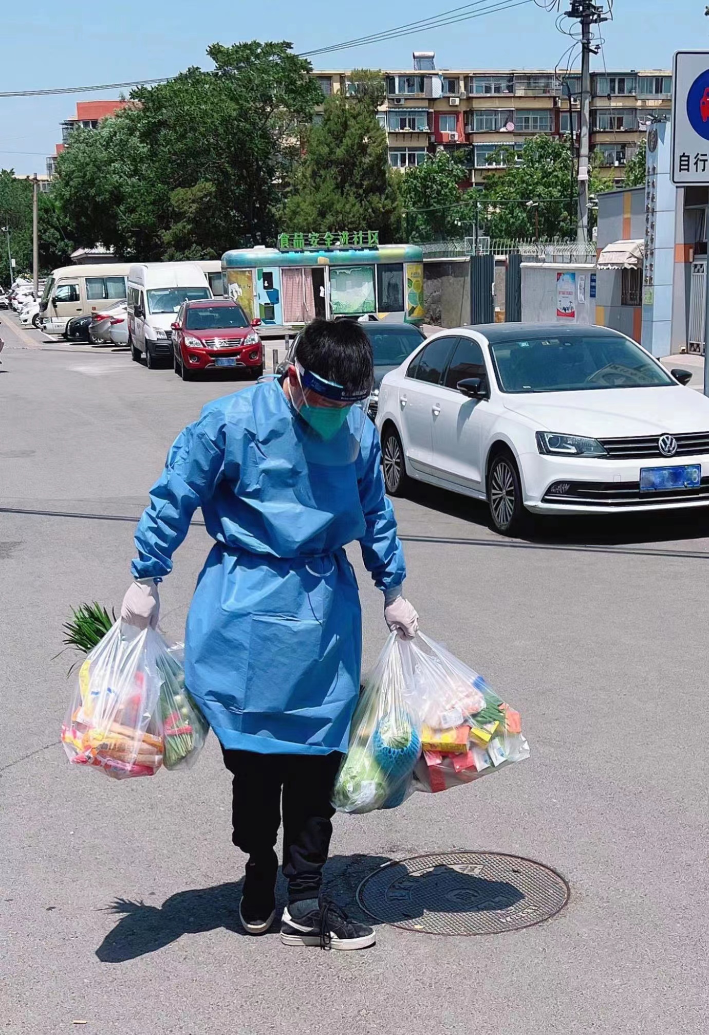 我居住的小区人员密集,地处丰台,属于老旧小区。5月,小区出现了确诊病例,大家按照疫情防控要求进行隔离。得知社区志愿者不足后,我第一时间联系了相关部门,希望能为抗疫尽一份力。而后,我就成为了大家眼中的“能量传递者”。半个月来,我每天穿梭于社区,负责将管控中居民所需的饮用水、食物补给等物资送到指定地点,经常一干就是一整天。虽然辛苦,但能为抗疫做出自己的努力,我深感自豪。家人都非常支持我,这段经历也使我成为6岁儿子眼中的“超级英雄”。