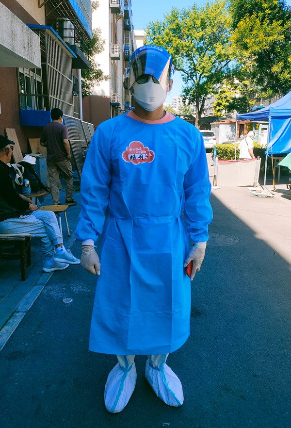 谈起在海淀区白堆子社区担任志愿者的经历,三团刀马旦、武旦演员白玮琛满是笑容,仿佛酷暑中高强度工作带来的艰辛完全不值一提。在报名志愿者后,因为手机系统限制的原因导致白玮琛无法立即加入扫码工作,然而她并没有因为这个小插曲打退堂鼓,反而和大家一起尝试各种方法,最后干脆自费换了一部手机。“从开始当‘学徒’到正式上岗再到后来我熟练工作并指导新的志愿者,每一次成长我都记得很清楚。直到现在我也无法忘记第一次穿上防护服的感觉,那是一种源自内心深处的骄傲!为大家全心全意服务是我作为党员的职责,穿着防护服的我是‘疫情防控志愿者’,等抗击疫情胜利,我依然愿意做脱了‘大白’防护服的志愿者,只要单位、社会需要我,我就时刻准备着!”
