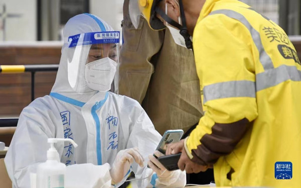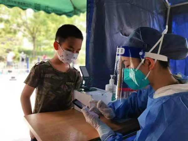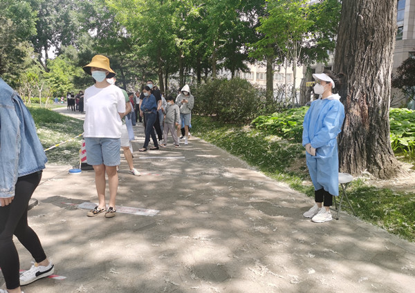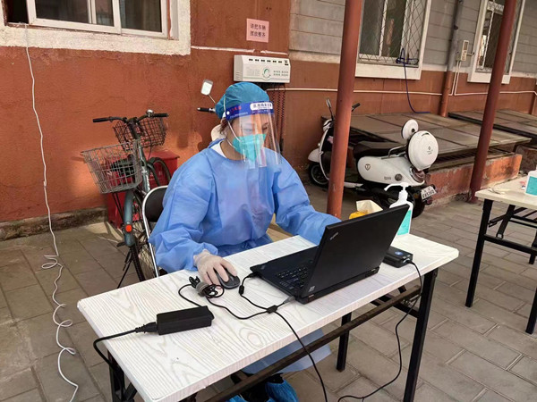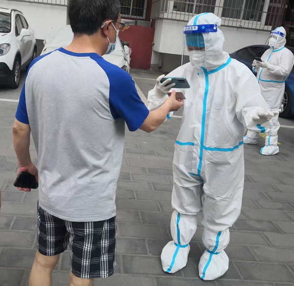 王珺自4月19日起便在丰台区右安门街道负责身份证信息录入、监督居民扫健康码及测温等工作。起初,居委会负责人很担心眼前这位瘦弱的小姑娘会不会因为太热太累就无法坚持,但是在核酸检测任务繁重期间,王珺连续在岗二十余天,任劳任怨,并被居民们亲切称为“服务态度最好,总带笑容的微笑工作者”。她用实际行动打消了负责人最初的“担心”,彰显了党员底色。谈起为什么会成为一名志愿者,她说:“我觉得街道工作人员都太辛苦,只有参与其中为大家分担我才能安心一些,没有其他杂念。上午作为志愿者服务大家,下午练功提高专业能力已经成为停工期间我每天的例行安排,我学到很多、收获很多,没有虚度光阴。”5月21日对宋云飞来说是难忘的一天,早晨7点她忽然接到电话,对方表示因为现场有工作人员被通知居家隔离,询问她可否立刻到岗。宋云飞没有片刻犹豫就答应下来,随即便出现在西城区前铁社区开始志愿服务。完成上午的身份证信息录入等工作后,下午她又到育德胡同为来往人群测温,帮助大家扫码登记。一天下来,宋云飞的衣服早已湿透,但是她的心里眼里只有怎么能为大家服务得更好。她说:“其实我只是为大家做了一点贡献,当大家表扬我的时候我还有点不好意思,因为在我心里觉得这都是该做的。吃点苦、受点累都没什么,只要能帮上忙我就开心。”