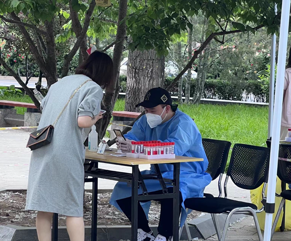 三团演奏员程浩哲,在东城区连续核酸筛查期间不畏辛苦成为了中海紫御社区的志愿者,负责录入身份证信息、维持秩序等工作,为核酸检测工作顺利开展保驾护航。出生于1997年的他谈到:“这次的经历让我深刻意识到‘奉献、友爱、互助、进步’的志愿精神,在今后的工作生活中,我还会继续发扬这种精神,努力成长为有理想、敢担当、能吃苦、肯奋斗的新时代好青年,用实际行动践行‘请党放心,强国有我’的青春誓言!”